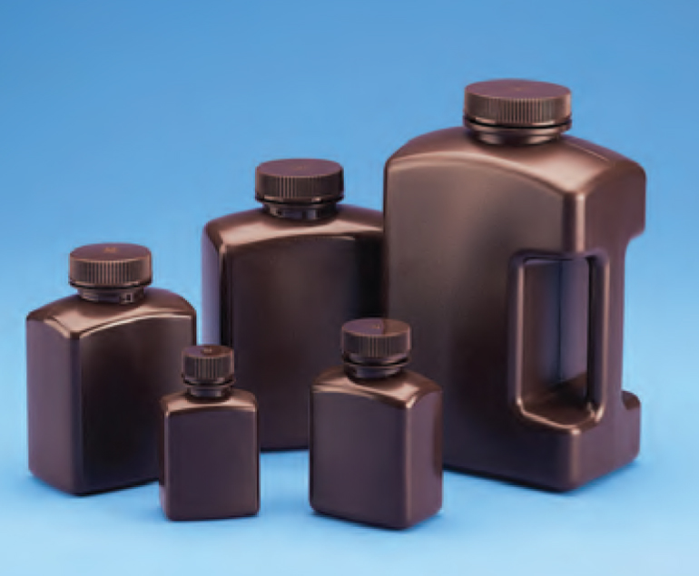 Amber Rectangular Wide Mouth Bottle, HDPE with PP Amber closure