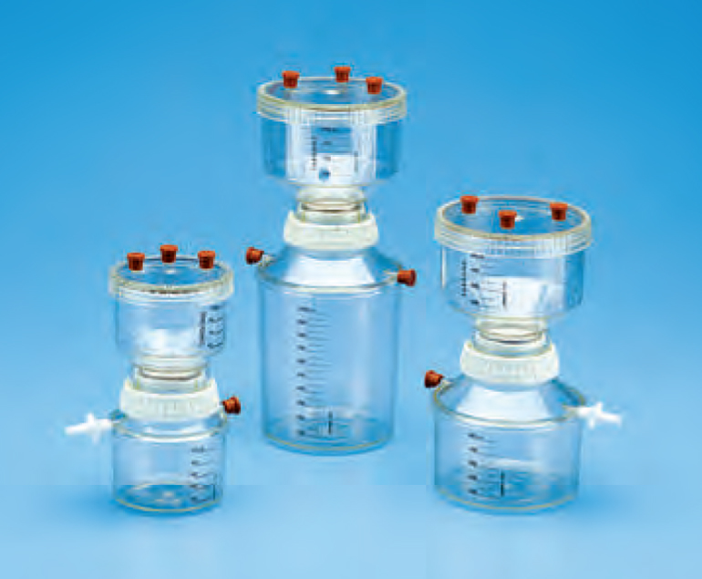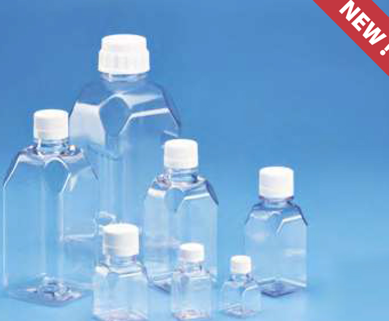 Sterile Square Graduated Media Bottle, PETG with white HDPE closure